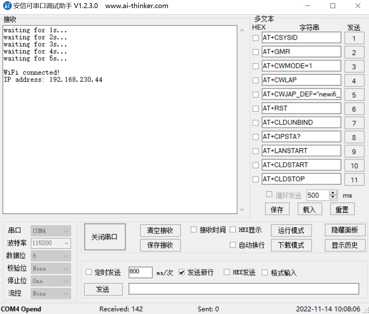 /* 2. 开启wifi连接,连接成功后打印IP地址 */