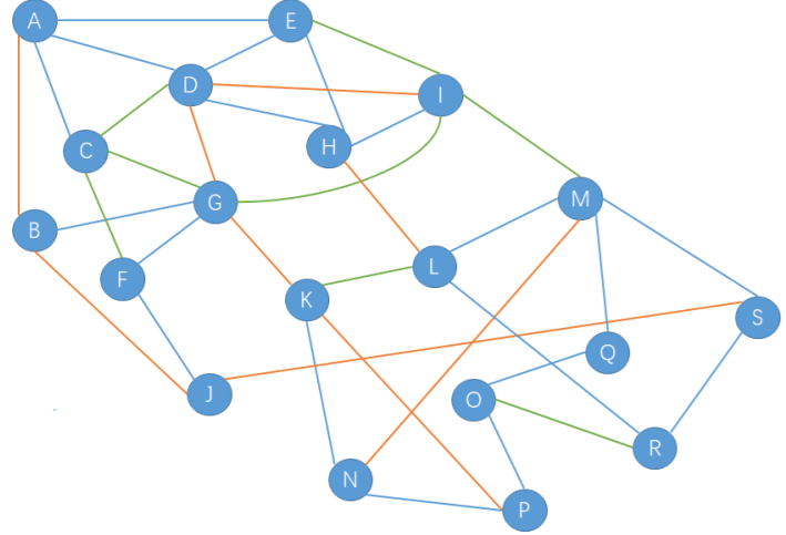 如下图所示,GG 是一个无向图,其中蓝色边的长度是 11、橘色边的长度是 22、绿色边的长度是 33。