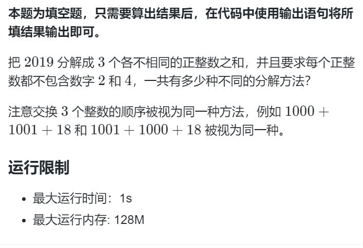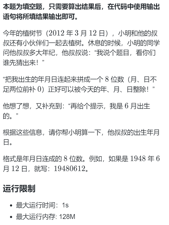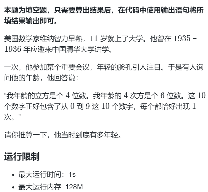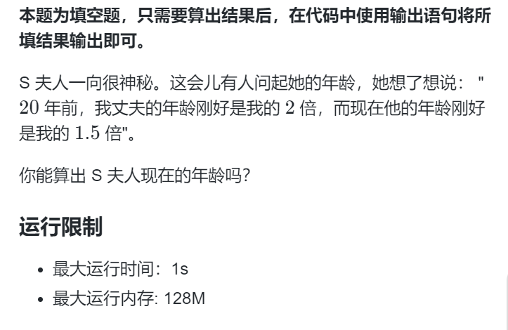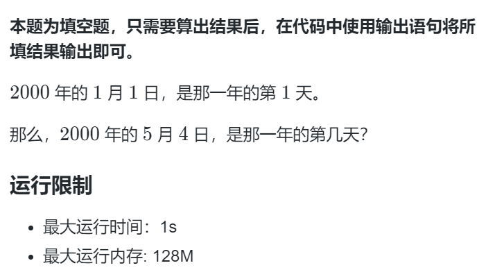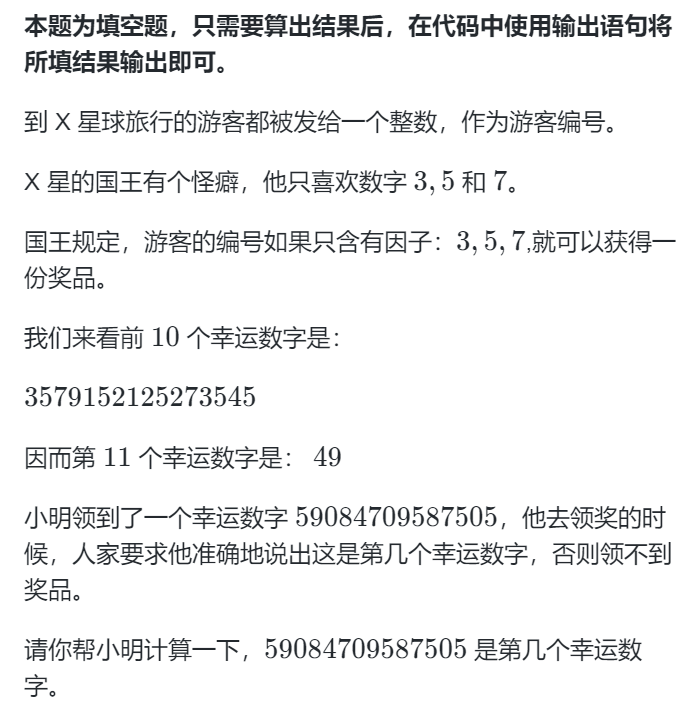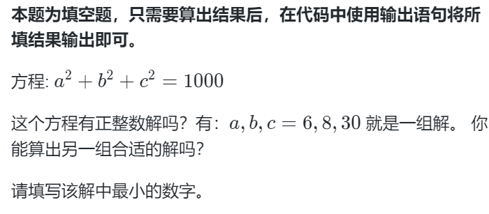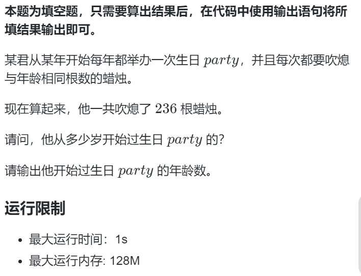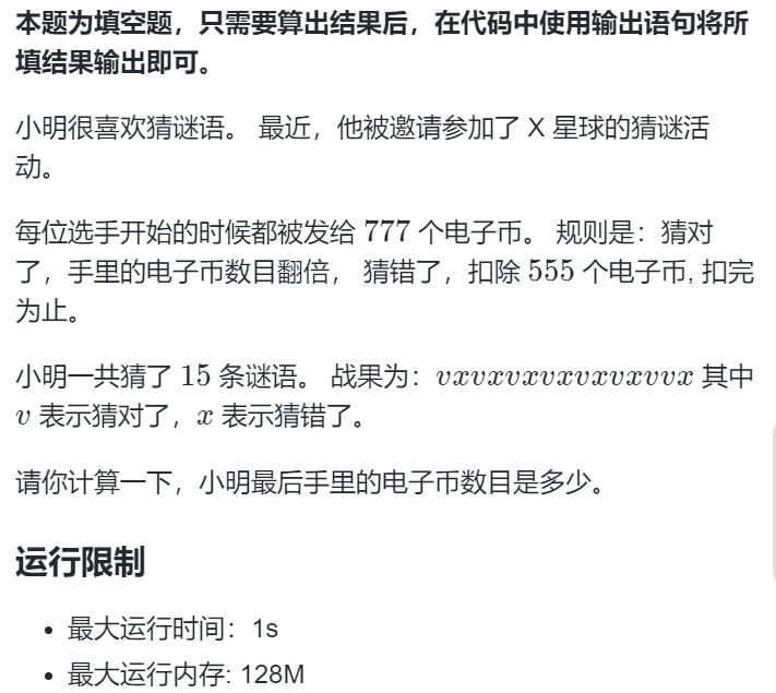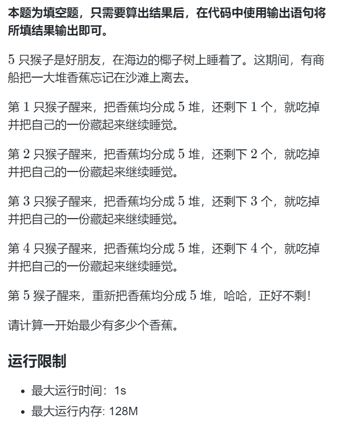 本题为填空题,只需要算出结果后,在代码中使用输出语句将所填结果输出即可。