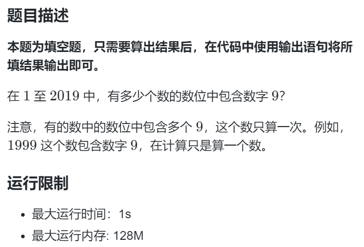 import java.util.Scanner; // 1:无需package // 2: 类名必须Main, 不可修改 public class Main { public static void main(String[] args) { Scanner scan = new Scanner(System.in); //在此输入您的代码... int count=0; String aString=""; for (int i = 1; i <=2020; i++) { aString=i+""; for (int j = 0; j < aString.length(); j++) { if(aString.charAt(j)=='2') { count++; } } } System.out.println(count); scan.close(); } }