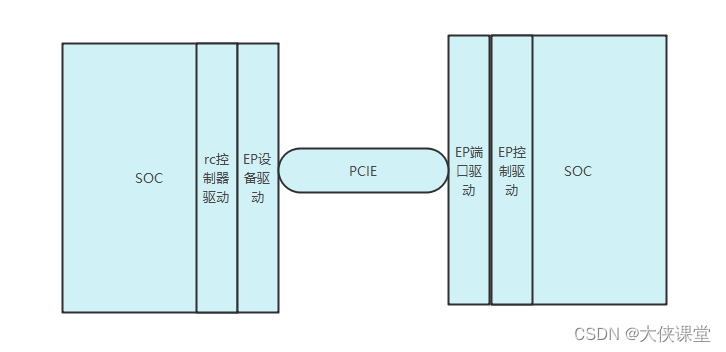 EP设备驱动,主要运行在RC侧,用于控制总线地址上的数据传输使用, 提供给应用层接口,应用层调用此接口完成数据传输,主要的分层结构如下